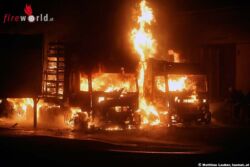 Über mehrere Notrufe wurde die Freiwillige Feuerwehr der Stadt Wels in den Stadtteil Pernau zu einem Lkw-Brand gerufen. Bei Eintreffen der ersten Einsatzkräfte waren zwei Lastkraftwagen bereits in Vollbrand. Als Erstmaßnahme wurden angrenzende Objekte durch die Feuerwehr erfolgreich geschützt.