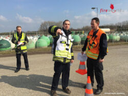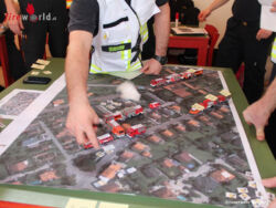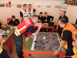 Ein weiterer Schwerpunkt lag bei dem Arbeiten in der Einsatzleitung und führen der relevanten Schriftstücken.Die ersten drei Planspiele wurden mit Modellbaufahrzeugen, Fotomontagen und aufgelegten Symbolen dargestellt und im Feuerwehrhaus Schwadorf abgearbeitet. Hierbei wurde aber nur auf Zuruf und fiktiven gespielten Funksprüchen geübt. Das Vierte Übungsszenario wurde dann direkt bei einem Industrieobjekt durchgespielt. Hier kamen dann die Distanzen und reale Funksprüche dem echten Einsatzgeschehen noch näher.Nach den vier Stunden ging ein für alle lehrreicher und intensiver Ausbildungstag zu Ende.