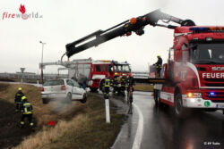 TULLN (NÖ): Am 01.03.2015 wurde die Feuerwehr Tulln um 16:09 Uhr zu einer Fahrzeugbergung beim Kreisverkehr „Tulln-Ost“ alarmiert. Der Lenker eines VW Polo hatte auf der regennassen Fahrbahn die Kontrolle über sein Fahrzeug verloren und ist im Bereich des Kreisverkehres von der Fahrbahn abgekommen.