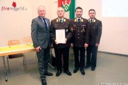 Es gab auch zahlreiche Beförderungen und Ehrungen. 1. KDTSTV. HBI Horst Neulinger wurde mit der Feuerwehrverdienstmedaille des Bezirkes Wels-Land in Gold ausgezeichnet. 60 Jahre Feuerwehr Weißkirchen wurde E-OBR Ernst Hörmanseder geehrt. Er war 16 Jahre Kommandant in Weißkirchen und 12 Jahre Bezirksfeuerwehrkommandant des Bezirkes Wels-Land. Unser KLF Baujahr 1977 wird im Juni durch ein neues KLF -L (Logistik) ersetzt. Hier Danke KDT Roland Wasserbauer der Gemeinde Weißkirchen mit Bürgermeister Norbert Höpoltseder für den Ankauf des Fahrzeug. Das neue KLF-L wird am Frühschoppen der FF Weißkirchen am 14.06.2015 eingeweiht.