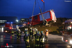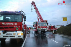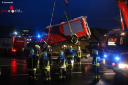 Bei dieser Kollision wurde der Autolenker ersten Informationen zufolge verletzt. Das Feuerwehrfahrzeug, ein LF-A, prallte nach dem Zusammenstoß gegen eine Straßenböschung. Die Freiw. Feuerwehr Eferding ließ in weiterer Folge das Kranfahrzeug aus Alkoven alarmieren, um die Bergungsarbeiten durchzuführen. Aufgrund eines Zwischenfalls mit Kranhydraulik war es in weiterer Folge erforderlich, die Feuerwehr Wels zur Bergung des LF-A zu verständigen. Diese führte im Anschluss die Bergung des Einsatzfahrzeuges durch, welches in weiterer Folge von der Unfallstelle abtransportiert worden ist. Per 19.45 Uhr waren alle Feuerwehren wieder eingerückt.