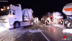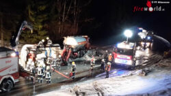 Stmk: Verkehrsunfall mit zwei Silo-Lkw am Fuße des Pötschenpasses