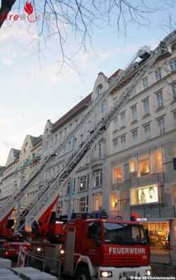 Nach Ankunft der Einsatzkräfte der Berufsfeuerwehr Wien wurde im gesamten Gebäude eine umfangreiche Erkundung durchgeführt, um den Brandherd lokalisierenzu können. Über eine Drehleiter konnte schließlich in der Dachkonstruktion ein Entstehungsbrand festgestellt werden.