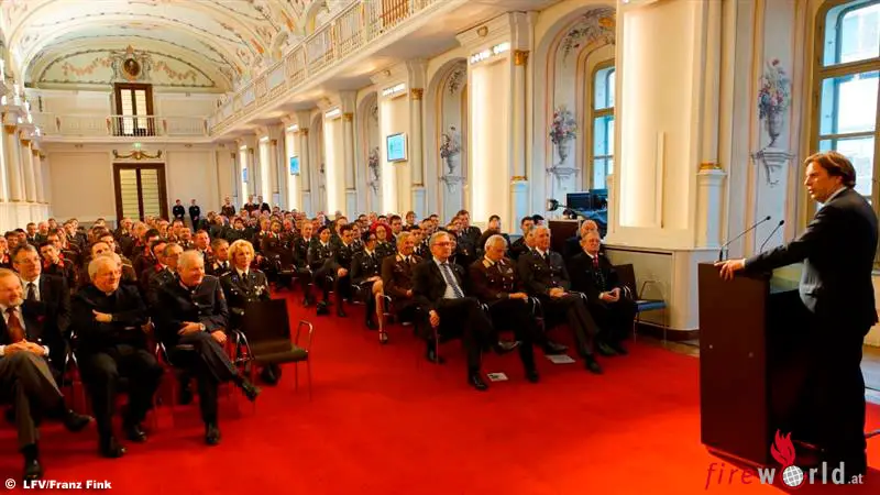 STEIERMARK: Landeshauptmann und Feuerwehrreferent Mag. Franz Voves hat aus Anlass der Wahlen in Kommandofunktionen und des Abschlusses von Offiziersausbildungen im Jahr 2014 im Feuerwehr- und Rettungswesen am Montag, dem 2. März 2015, zu einem Empfang in die Aula der Alten Universität Graz geladen. Über 40 neu gewählte Feuerwehrfunktionäre aus allen Teilen der Steiermark und 16 Bereitschaftskommandanten des ÖRK-Landesverband Steiermark haben der Einladung zur Verleihung der Dekrete und Ehrenurkunden Folge geleistet.