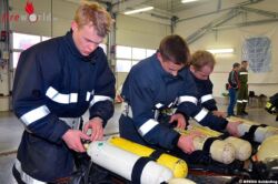 Nach wochenlanger Vorbereitung, stellten sich insgesamt 18 Trupps zu je drei Atemschutzgeräteträgern. Bei der Atemschutzleistungsprüfung werden auf den vier Stationen sowohl praktische Kenntnisse als auch theoretisches Wissen der Teilnehmer überprüft. In einer aufgebauten Übungsstrecke müssen die Teilnehmer wie bei einem echten Atemschutzeinsatz bei vollkommener Dunkelheit eine Hindernisstrecke überwinden und verschiedene Aufgaben, wie das Retten von Personen, das Erkennen von Gefahrstoffen und das Löschen eines Brandes bewältigen.