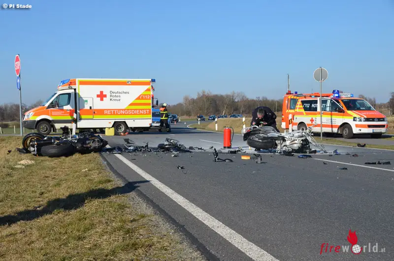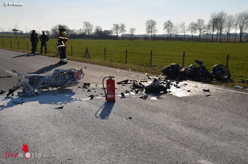 STADE (DEUTSCHLAND): Am Nachmittag des 8. März 2015 kam es in Stade auf der Kreisstraße 30 zu einem tragischen Unfall, bei dem zwei Motorradfahrer tödliche Verletzungen erlitten.