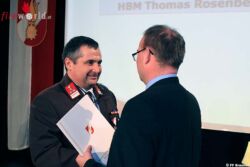 Für deren Ausbildung wurden 40 Gruppentreffen – bei denen natürlich auch der Spaß nicht zu kurz kommt – mit einem Aufwand von 4620 Stunden abgehalten. Alles in allem leisteten die Kameraden der Freiwilligen Feuerwehr der Stadt Braunau 23.864 Stunden zum Wohle und zum Schutz der Bevölkerung von Braunau und Umgebung. Neben den offiziellen Beförderungen und Ernennungen wurden wieder die „Feuerwehrler des Jahres“ geehrt. Im Jahr 2014 wurden für Ihren besonderen Einsatz Schriftführer AW Michael Lindner, sowie EDV-Beauftragter und Gruppenkommandant HBM Richard Rossmaier ausgewählt. Nominiert wurden sie, da die genannten Mitglieder im abgelaufenen Jahr über einen längeren Zeitraum besonderen Einsatz, überdurchschnittliche Leistungen oder besonders großen Einfluss auf die positive Entwicklung unserer Feuerwehr gezeigt bzw. erbracht haben.