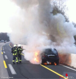 ERKRATH (DEUTSCHLAND): Am Montag, den 09.03.2015, wurde die Feuerwehr Erkrath um 17:26 Uhr durch die Kreisleitstelle zu einem Pkw-Brand auf die BAB 3 Fahrtrichtung Oberhausen kurz hinter der Neandertalbrücke alarmiert. Bei Eintreffen der Einsatzkräfte stand das Fahrzeug bereits in Vollbrand.