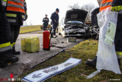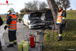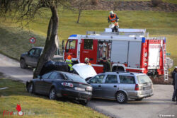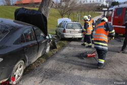 Ein Pkw prallte schließlich gegen einen Baum. Entgegen ersten Annahmen war niemand im Fahrzeug eingeklemmt und auch niemand verletzt. Die Feuerwehr unterstützte bei den Aufräumarbeiten und band ausgelaufene Betriebsmittel. Der Unfallbereich war kurzzeitig erschwert passierbar.