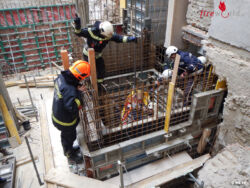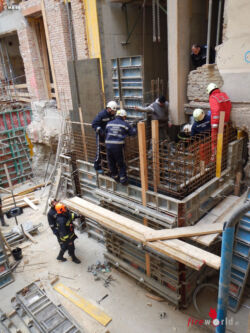 WIEN, 9. BEZIRK: In die Servitengasse wurde die Berufsfeuerwehr Wien um 12.25 Uhr des 9. März 2015 zu einem Personenrettungseinsatz alarmiert. Auf einer Baustelle war ein Bauarbeiter in eine schachtartige Schalung (für einen zukünftigen Aufzugsschacht) gestürzt.