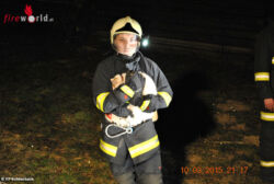 Versuche von den Besitzern, die Katze runterzulocken misslangen. So entschloss man sich, die Feuerwehr zu verständigen. Die FF Schlierbach rückte mit dem KLF-A und vier Mann zu der Tierrettung aus. Am Einsatzort angekommen, mussten die Helfer jedoch feststellen, dass die Katze sich in einer Höhe befand, die trotz aller Rettungsversuchen nicht zu erreichen war. Somit alarmierte man die FF Kirchdorf mit der Drehleiter. Mit ihrer Hilfe gelang es schließlich, die verängstigte Katze vom Baum zu retten und den erleichterten Besitzern zu übergeben.