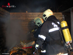 Aus ungeklärter Ursache war in einem Garten ein Holzverschlag, in dem Mülltonnen und ein Komposthaufen sowie Gartengeräte gelagert waren, in Brand geraten. Beim Eintreffen der Feuerwehr Pinkafeld wurden von den Eigentümern bereits erste Löschversuche mit einem Handfeuerlöscher und einem Gartenschlauch unternommen. Ein Atemschutztrupp begann sofort mit einem Löschangriff mittels HD- Rohr. Bereits nach wenigen Minuten war der Brand unter Kontrolle und es konnte "BRAND AUS" gegeben werden.