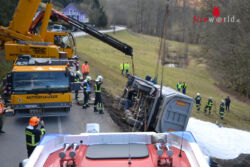 Oö: Mehrstündige Bergung eines abgestürzten Lkw