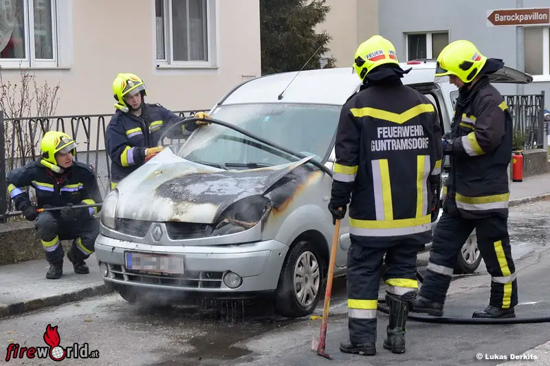Ein Mitglied der Freiwilligen Feuerwehr Guntramsdorf sah zu diesem Zeitpunkt aus seinem Wohnungsfenster und bemerkte ebenfalls das rauchende Fahrzeug. Nach Alarmierung der Feuerwehr wurde der Entstehungsbrand im Motorraum mit einem tragbaren Feuerlöscher durch das Feuerwehrmitglied eingedämmt sowie die im Fahrzeug befindlichen Wertgegenstände in Sicherheit gebracht.