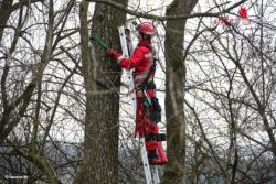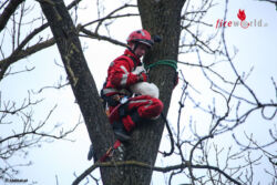 WARTBERG / KREMS (OÖ): Höhenretter der Feuerwehr Irndorf mussten Donnerstagabend, 12. März 2015, in Wartberg an der Krems (Bezirk Kirchdorf an der Krems) eine Katze von einem Baum aus etwa 20 Metern Höhe retten.