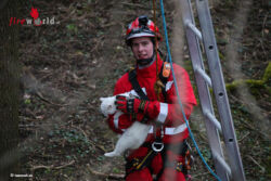 Katze "Hexe" harrte bereits seit mehreren Tagen auf einem Baum, in etwa 20 Metern Höhe aus. Am Donnerstag war dann klar, dass die Katze von selbst offenbar nicht mehr vom Baum herunter kommt. Da sich der Baum in der Nähe eines Bauernhofes in etwas unwegsamen Gelände befand, kamen die Höhenretter der Feuerwehr Irndorf zum Einsatz.