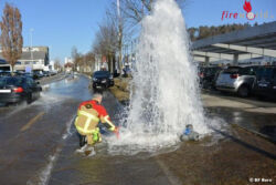 BERN (SCHWEIZ): Am Donnerstagnachmittag, 12. März 2015, hat ein umgefahrener Hydrant eine hohe Wasserfontäne verursacht. Die Feuerwehrmänner konnten den sich direkt beim Hydranten befindlichen Schieber der Zugangsleitung schließen, ohne dass größerer Schaden entstanden wäre.