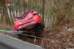 Oö: Spektakulärer Absturz eines Fahrzeuges in Leonstein