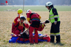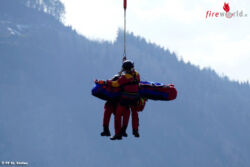 Von den Einsatzkräften, an der schwer erreichbaren Unfallstelle wurde festgestellt, dass ein Forstarbeiter von einem Baum überrollt und in den unteren Körperbereichen schwer verletzt wurde. Der Einsatzleiter alarmierte auf Grund des abgelegenen und mit einem Fahrzeug nicht erreichbaren Einsatzortes den Rettungshubschrauber C12. In der Zwischenzeit wurde der Verunfallte von den Feuerwehrkräften erstversorgt. Das Rettungspersonal des C12 konnte nur per Seil zur Unfallstelle geflogen werden. Nach Stabilisierung der ansprechbaren verletzten Person wurde diese per Seilbergung zu einer Wiese geflogen, dort in den Rettungshubschrauber umgelagert und anschließend in das LKH Graz gebracht.