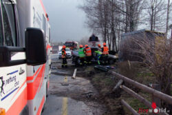 Er wurde dabei schwer verletzt und eingeklemmt. Mit Schneidewerkzeug wurde er aus dem Fahrzeug befreit. Die Rettung Chur überführte ihn ins Kantonsspital Graubünden. Das Fahrzeug erlitt Totalschaden und musste abtransportiert werden. Am Bahnübergang entstand Sachschaden.