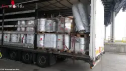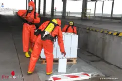 Durch die Polizei wurde festgestellt, dass von der Ladefläche eines Sattelzuges Flüssigkeit abtropft. Beim Öffnen der Plane konnten mehrere beschädigte Behälter wahrgenommen werden. Unverzüglich wurden die Feuerwehren Nickelsdorf, Neusiedl am See und der Chemiker des Landes-Feuerwehrverbandes alarmiert. Die Aufgabe der Neusiedler Wehr bestand darin, die beschädigten Behälter unter Schutzstufe 2 zu bergen, in eine Umverpackung zu geben und der Transport der beschädigten Behältnisse zu einer Fachfirma zwecks Entsorgung.