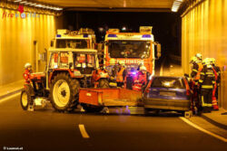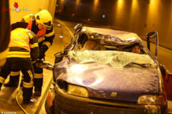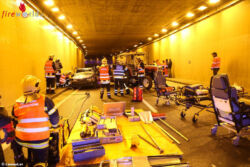 HÖRSCHING (OÖ): Die Feuerwehr und das Rote Kreuz übten Montagabend, 16. März 2015, im Tunnel der Umfahrung Neubau in Hörsching (Bezirk Linz-Land) für den Ernstfall. Übungsannahme war ein ein schwerer Verkehrsunfall mit eingeklemmten Personen im Tunnel.