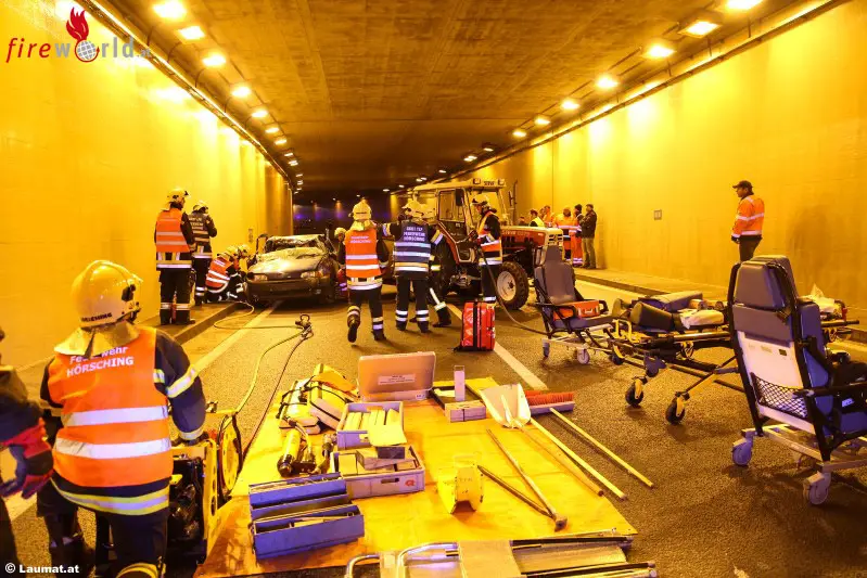 Oö: Tunnelübung der Einsatzkräfte von Feuerwehr und Rotem Kreuz in Hörsching