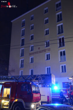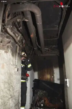 Daher wurden unverzüglich, gleichzeitig mit der Brandbekämpfung im Keller, sämtliche Bewohner evakuiert, wobei drei Kinder aus einer Wohnung im 1. Stock mit der Drehleiter in Sicherheit gebracht werden konnten. Der Brand selbst wurde mit einer Löschleitung unter Atemschutz gelöscht und von mehreren Atemschutztrupps wurden der gesamte Keller sowie alle Stiegenhäuser und Gänge kontrolliert.