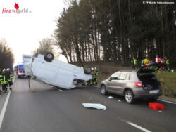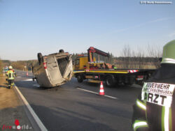 Deutschland: Am Dach liegender Kleintransporter auf der B 299 bei Geisenhausen