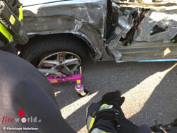ST. VEIT/TR. (NÖ): Am 18.3.2015 wurde gegen 14:45 Uhr die FF St. Veit/Tr. von der Bezirksalarmzentrale Baden zu einer Fahrzeugbergung auf die B 18 alarmiert. Ein Pkw-Lenker touchierte seitlich einen entgegenkommenden Lkw-Zug, woraufhin der Pkw auf der Fahrerseite erheblich beschädigt wurde und nicht mehr fahrbereit war.