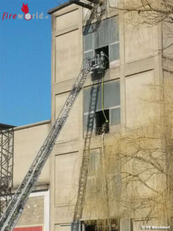 Durch eine Zuleitung über die Drehleiter wurde der Glimmbrand unter schweren Atemschutz mit Schlauchpaket und Hohlstrahlrohr bekämpft und konnte schnell unter Kontrolle gebracht werden. Das komplette Ablöschen des Brandes nahm dagegen mehr Zeit in Anspruch. Der Einsatz war für Mannschaft und Ausrüstung aufgrund des Kohlestaubes eine große Herausforderung.