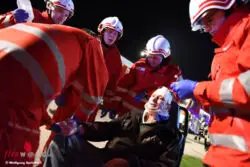 Oö: Großübung: Schwerer Verkehrsunfall, Gefahrgutaustritt und Person eingeklemmt