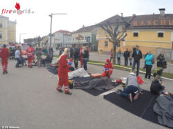Diese Situation bot sich den rund 100 Zusehern bei der Alarmstufe 2 Übung der FF Altheim. Gemeinsam mit den Feuerwehren Wienser und Hager, Polling, St. Veit, Moosham, Rossbach, Weng, Braunau und Munderfing und drei Einheiten vom Roten Kreuz wurde für den Ernstfall geübt. Die eingesetzten Atemschutztrupps mussten insgesamt 31 Personen aus dem Gebäude retten. Die Opfer wurden dann vom Roten Kreuz versorgt und abtransportiert. Zusätzlich zum normalen Übungsablauf war diesmal auch der Umgang mit vielen Schaulustigen und einigen Pressevertretern Teil des Szenarios. So langten in der Einsatzleitstelle beispielsweise Anrufe von besorgten Eltern und einem Radiosender ein. Außerdem musste der Einsatzleiter einem Fernsehteam Rede und Antwort stehen.