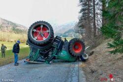 Dadurch kam er mit dem Traktor links von der Fahrbahn ab und stieß gegen die Straßenböschung. In der Folge überschlug sich der Traktor samt Anhänger und kam auf dem Dach zum Liegen. Das Unfallopfer konnte sich selbstständig aus dem schwer beschädigten Führerhaus befreien und die Rettungskräfte alarmieren. Der 56-Jährige wurde nach der Erstversorgung durch die Rettung Molln und durch das Team des NEF Kirchdorf mit dem Rettungshubschrauber Christophorus 10 mit Verletzungen unbestimmten Grades ins Krankenhaus Wels eingeliefert.