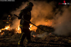 SCHÖNAU AN DER TRIESTING (NÖ): In den Nachtstunden des 23. März 2015 fingen mehrere Strohballen Feuer. Da sich der Brandherd in der Nähe der LB17 befand wurde er rasch von Autolenkern entdeckt und über Notruf 122 gemeldet.