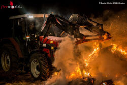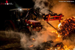Ein solcher Strohristenbrand darf zu Beginn nicht mit Wasser abgelöscht werden, da sich unter den Strohhaufen und in den komprimierten Ballen Glutnester befinden. Aufgrund dessen mussten die Strohballen mit mehreren Einreißhaken und einem Traktor mit Frontlader zerteilt werden. Erst danach konnte das Feuer mit 4.000 Liter Wasser abgelöscht werden.