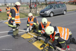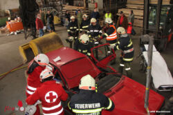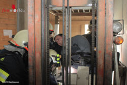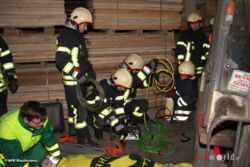 Bei Ladearbeiten im Bauhof der Fa. Hentschläger in Langenstein kommt es zum Zusammenstoß eines Staplers mit einem PKW und eine Schuttmulde stürzt zu Boden. Ein weiterer Stapler – gelenkt vom geschockten Ehren-Abschnittskommandant Ferdinand Roßpickhofer – stößt gegen ein Regal. Insgesamt werden 4 Personen im PKW, unter der Schuttmulde und dem Stapler eingeklemmt. Den Feuerwehren Langenstein, Luftenberg/D. und Mauthausen gelang es mit Hilfe des hydraulischen Rettungsgerätes und der Hebekissen die Eingeklemmten zu befreien und den Rettungskräften zu übergeben.