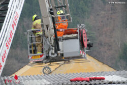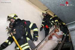 Bei Reparaturarbeiten am Dach der Fa. Merckens in Schwertberg kommt es zu einem Brand. Eine verletzte Person musste mit Hilfe des Hubrettungsfahrzeuges der FF Perg gerettet werden. Weitere Personen sind über eine schmale Stiege aus einem Lager zu retten. Zur Unterstützung der eingesetzten Kräfte wurde bezirksübergreifend auch die FF Tragwein angefordert.