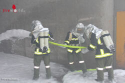In Lagerboxen der Abfallentsorgungsanlage der Energie AG (AVE) in Ruhstetten (Gem. Katsdorf) gelagerter Abfall brennt. Durch die starke Rauchentwicklung ist eine Person im Werkstättenbereich eingeschlossen. Container verstellen den Zutritt in das Werkstättengebäude und eine Person ist unter einem Container eingeklemmt. Die Verletzten werden geborgen und dem Rettungsdienst übergeben. Die brennenden Abfälle können nur durch den Einsatz von Löschschaum eingedämmt werden. Bei dieser Übung wurde erstmals auch das nagelneue Tanklöschfahrzeug der FF Wartberg/Aist eingesetzt.