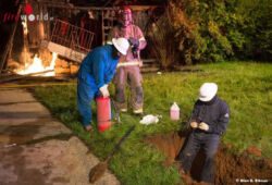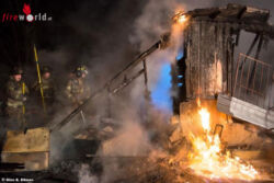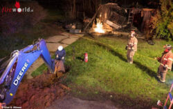 Während der Brandbekämpfung stürzte ein Teil des Hauses plötzlich ein. Dabei wurde auch die Gasstation bzw. der Gaszähler beschädigt. Ausströmendes Gas entzündete sich schlagartig und zwang die Feuerwehrkräfte zum Rückzug.