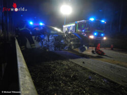 Nach der Bergung der schwer beschädigten Fahrzeuge durch ein Abschleppunternehmen war der Einsatz nach rund eineinhalb Stunden beendet. Neben den fünf Fahrzeugen der Freiwilligen Feuerwehr waren zwei Rettungswagen, der Notarzt sowie die Polizei an der Einsatzstelle.