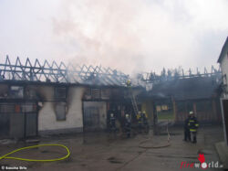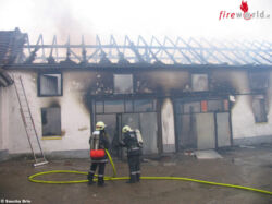 Ein Teil des Vierkanthofes, nämlich der Wirtschaftstrakt und der Dachstuhl des Wohnhauses, waren nicht mehr zu retten. Personen oder Tiere kamen bei dem Brand nicht zu Schaden. Insgesamt stehen zur Zeit – 17.15 Uhr – noch neun Feuerwehren mit 93 Mitgliedern und 17 Fahrzeugen im Einsatz.