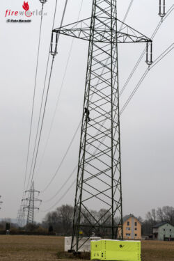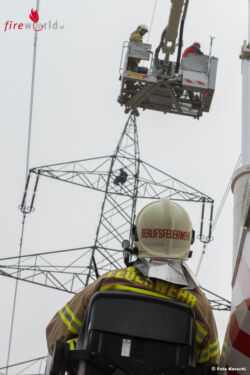 LINZ (OÖ): Ein Großaufgebot an Einsatzkräften rückte gegen 08.30 Uhr des 26. März 2015 in Linz zu einer Personenrettung aus. Ein Mann war auf einen Hochspannungsmasten geklettert und harrte dort in rund 60 Metern aus.