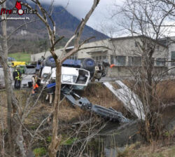 Gegen 12:00 Uhr hob ein Arbeiter mit dem Kran ein ca. 12 Tonnen schweres Betonelement. Daraufhin kam der Kranwagen ins Schwanken und kippte über die Kanalböschung. Verletzt wurde niemand. Allerdings kam es zu Öl- bzw. Dieselaustritt, welcher durch die Feuerwehr mittels Ölbinder eingedämmt worden ist.