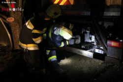Stmk: Nächtliche Bergung eines Lkw aus einem Garten in Apfelberg