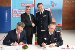 Als ein weiterer Baustein zur Steigerung der Attraktivität zur Mitgliedschaft in einer Jugendfeuerwehr unterzeichneten Landesbrandmeister Detlef Radtke und der Präsident des Verbandes Handwerk Schleswig-Holstein e.V., Ulrich Mietschke, eine ge-meinsame Erklärung, in der man sich die Förderung des Übergangs von der Schul-zeit in die Berufstätigkeit auf die Fahnen schreibt. "Neben der technischen Bildung bietet die Jugendfeuerwehr als Träger der freien Jugendhilfe auch vielfältige allge-meine Jugend- und Bildungsarbeit an. Damit unterstützen die Jugendfeuerwehren im Land Schleswig-Holstein neben der technisch-fachlichen Förderung auch die persönliche Entwicklung jedes einzelnen Jugendlichen. Dazu gehört auch der Übergang von der Schule ins Berufsleben" so Mietschke und Radtke über-einstimmend. Die berufliche Orientierung sei ein wichtiger Schritt zur Berufswahlentscheidung. Die Jugendfeuerwehr Schleswig-Holstein und Handwerk Schleswig-Holstein e.V. wollen in diesem Bereich miteinander kooperieren und sich gegenseitig bei ihren jeweiligen Aktivitäten unterstützen. Damit können die Aktivitäten beider Partner in der beruflichen Orientierung Jugendlicher verstärkt und qualitativ wie auch quantitativ verbessert werden.