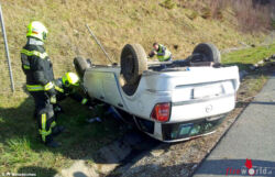 MOOSKIRCHEN (STMK): Ein in Fahrtrichtung Klagenfurt fahrender Fahrzeuglenker kam am 28. März 2015 mit seinem Pkw – unmittelbar nach der A2-Autobahnauffahrt Mooskirchen – rechts von der Fahrbahn ab, riss an die 100m Zaun nieder, überschlug sich und kam am Dach zum Liegen.