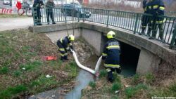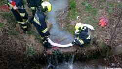 SANKT VEIT AN DER TRIESTING (NÖ): Am 29. März 2015 wurde die Feuerwehr St. Veit um 16.22 Uhr von der Bezirksalarmzentrale Baden zu einem Schadstoff-Einsatz in die Buchbachgasse alarmiert. Anrainer des Buchbaches erstatteten bei der Polizei Berndorf Anzeige über eine starke Verunreinigung des Baches.
