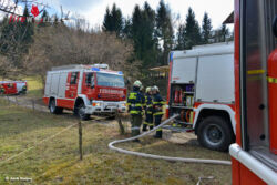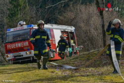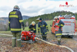 Übungsannahme war der Brand in einem Wohngebäude, wobei so gut wie keine Wasserentnahme durch die Ortswasserleitung möglich war. Ebenso war die Zufahrt über die schwer befahrbare Forststraße Hungersbühel nur unter widrigen Bedingungen möglich.