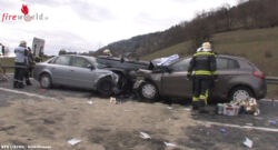 PRUGGERN (STMK): Zwei Pkw kollidierten am Nachmittag des 29. März 2015 auf der Ennstalbundesstraße in Höhe von Pruggern frontal. Vier Personen wurden dabei zum Teil schwer verletzt.